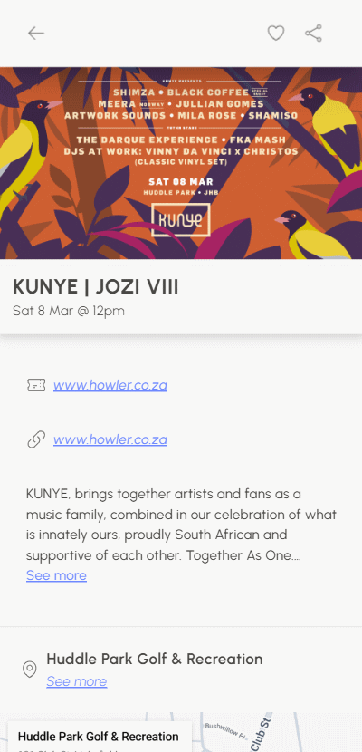 - Complex search filters + location filters to find the exact event for you.